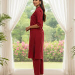 Premium Silk Kurti Set in a rich Maroon shade for a luxurious and festive look