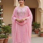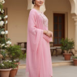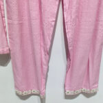 Design :Subtle embroidery on neckline with floral detailing, lace finishing on sleeves, hem & pant
