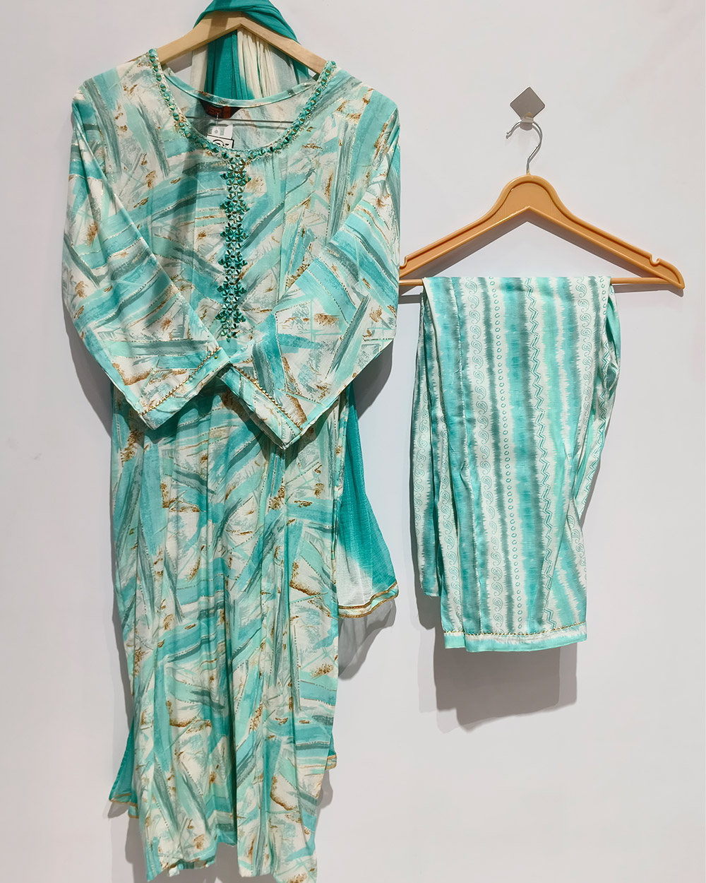 ✨ Paired with a lightweight chiffon dupatta in soothing dual-tone shades for an elegant flowy look.
