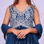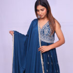 Crafted from premium georgette or luxury poly-blend, this gown offers a smooth texture and elegant fall. Designed with it has a flattering silhouette and soft lining for comfort throughout the day. The attached sleeve fabric ensures styling flexibility for various occasions — from festive gatherings to evening events.