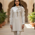 Combines modern silhouette with traditional embroidery for a timeless appeal.