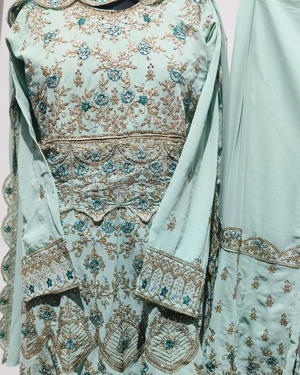🌸 Sharara: Heavy embroidered bottom with wide flare for a regal look