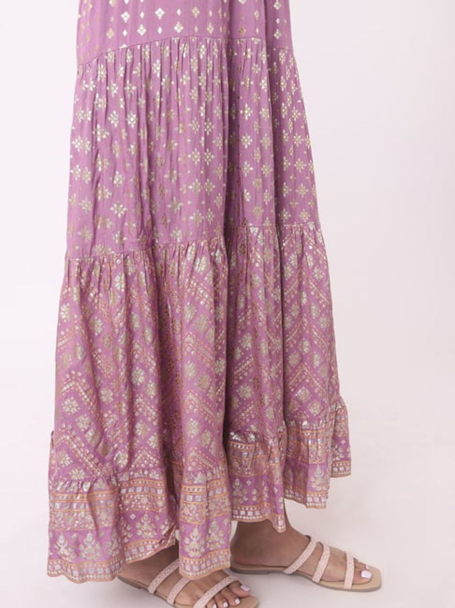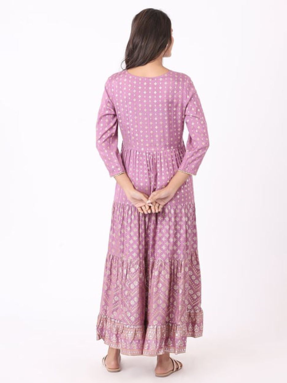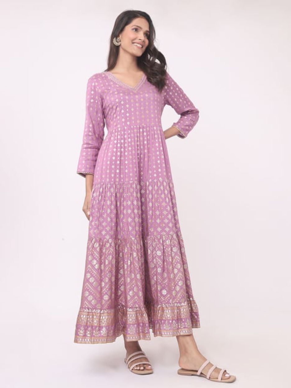 Display your true elegant side in this charming lilac kurta from ITSE. This relaxed-fit kurta is crafted from premium viscose fabric that makes it soft and comfortable to wear. It has a V-neck, a printed pattern, and is three-quarter length. Dress it up by pairing it with leggings.