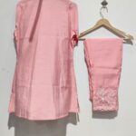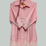 CODE: FESTIVAL5Soft pink modal shirt with delicate white floral embroidery on sleeves and hemline.