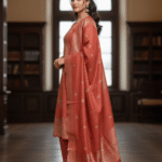 Highlight: Intricate woven work on the neckline, border, and dupatta for a regal ethnic look.