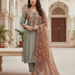 Be the first to review “Pure Muslin Digital Print Suit (Grey with Red)”