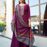Pure Muslin Dola Jacquard Suit Set (Dark Purple)