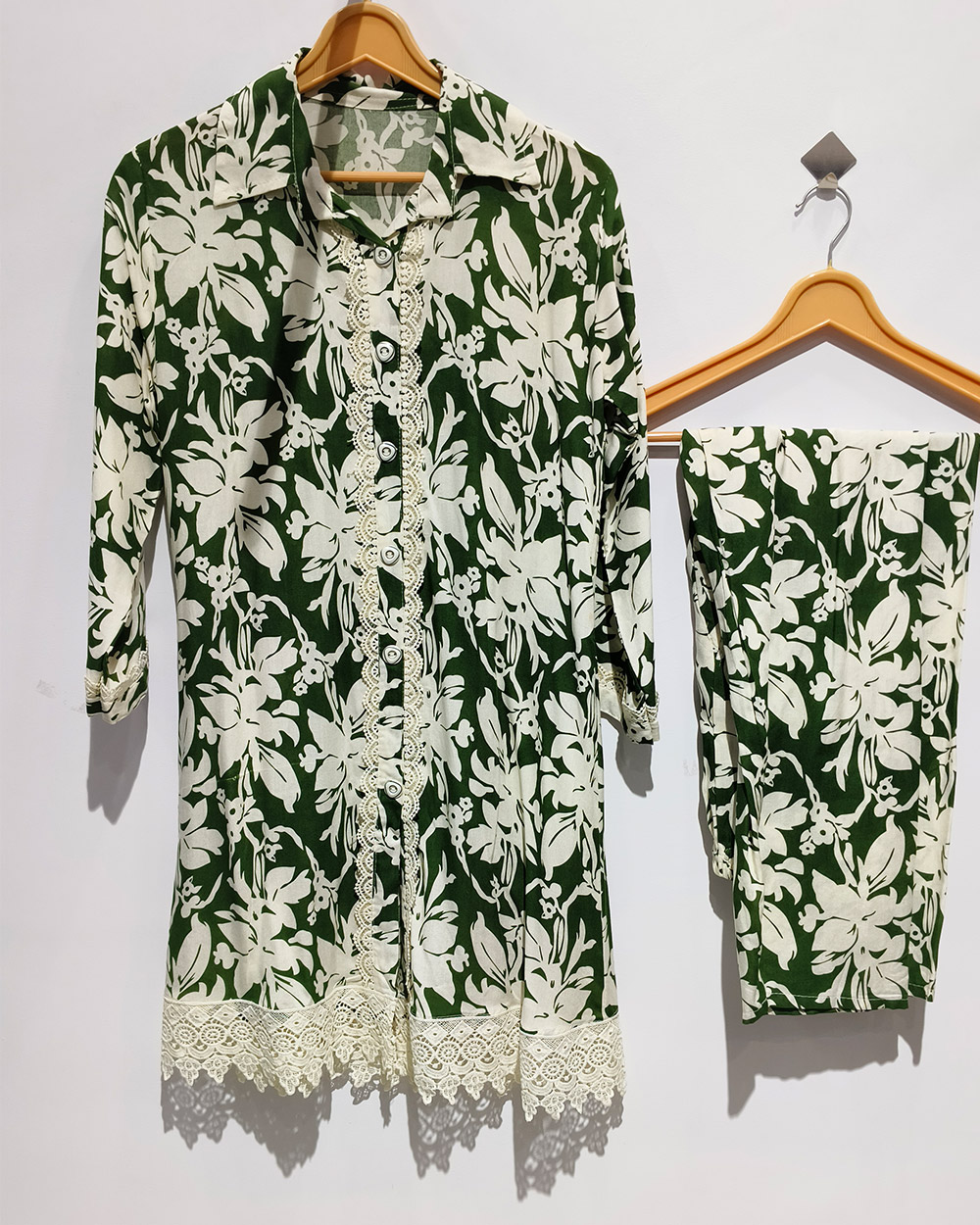 The Rayon Cotton Cord Set is a stylish coordinated outfit crafted from a premium blend of rayon and cotton fabric. Known for its softness, breathability, and elegant drape, this cord set is perfect for both everyday comfort and semi-formal occasions.
