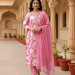 Step into elegance with this Reyon Angrakha Style Suit with Chiffon Dupatta – a chic pick for festive & casual wear.