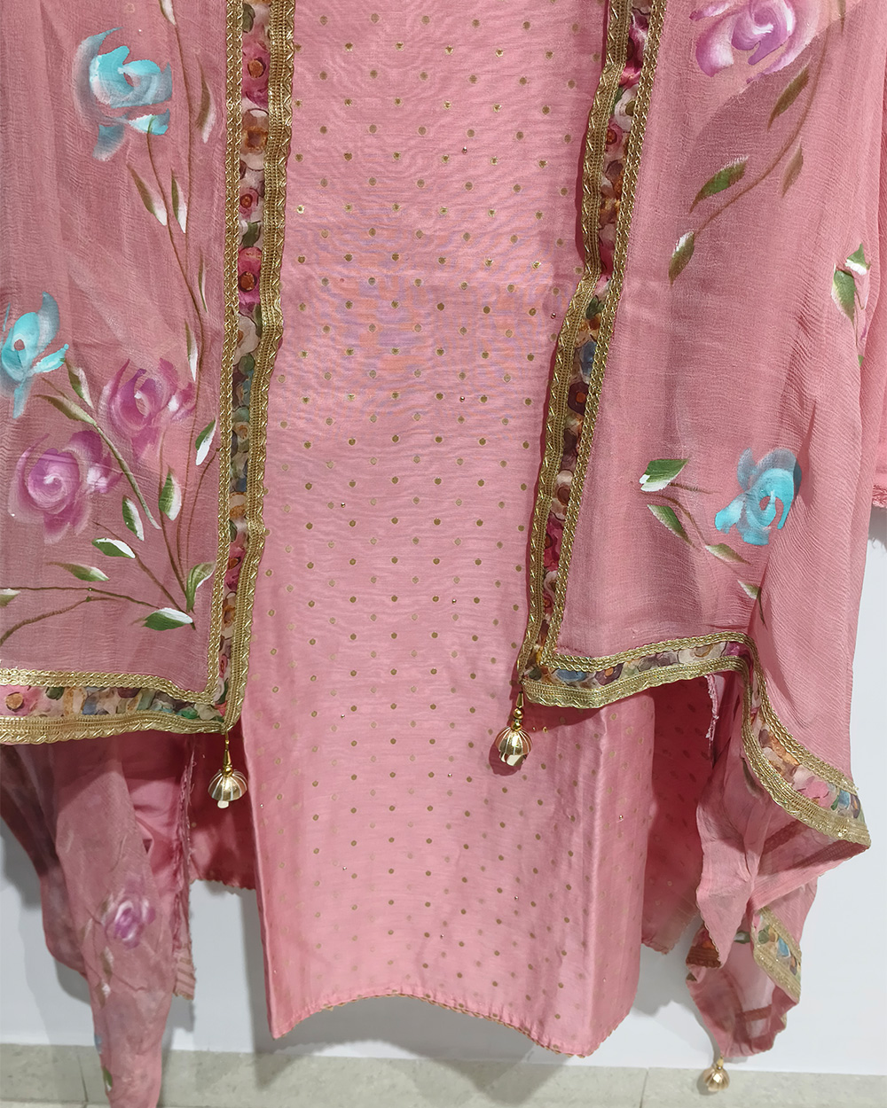 Work: Intricate hand embroidery with fine detailing that exudes grace and charm.