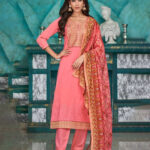 CODE: FESTIVAL5Elevate your ethnic wardrobe with this Stylish Designer Salwar Suit from Surat’s leading wholesaler. The unstitched Muslin top showcases exquisite jacquard neck detailing and intricate work, giving it a luxurious touch. It is complemented by a comfortable Rayon bottom and a Fancy Stripe Digital Print Dupatta, beautifully finished with four-side jacquard lace for a refined look.