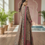 Design: Intricate Kashmiri Floral Weave – Front neck and panel detailing